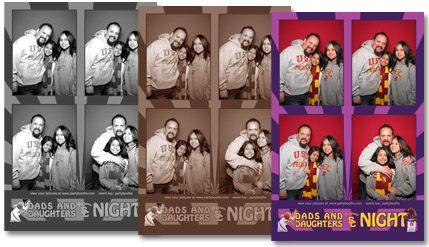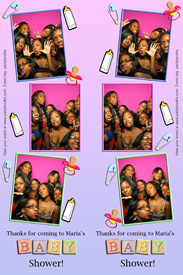 All of our rentals include the choice of print “configurations”. We currently have 6 different configurations to choose from shown below. Remember, we will add any text, logos, graphics, etc to your print outs and will even design a custom layout for you for free. Then we will send you an email proof for your review prior to your event. Click the configuration you like to see samples from previous events to give you some ideas.